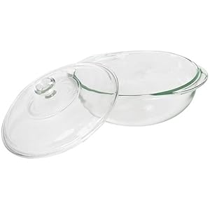 Made of durable Pyrex glass, a longtime trusted name in bakeware, this 1-1/2-quart covered casserole dish is perfect for everything from lasagnas and cassoulets to cakes, breads, and cobblers. Pyrex glassware is nonporous, so it won't stain or absorb food odors. Incredibly durable as long as sudden changes in temperature are avoided, this casserole dish is safe for the oven, microwave, freezer, refrigerator, and dishwasher. Some stubborn scorch marks may require a little extra soaking or scrubbing. A manufacturer of high-quality glass products for the better part of a century, Pyrex covers the glassware with a two-year warranty against defects. This glassware should last a lifetime with proper care.